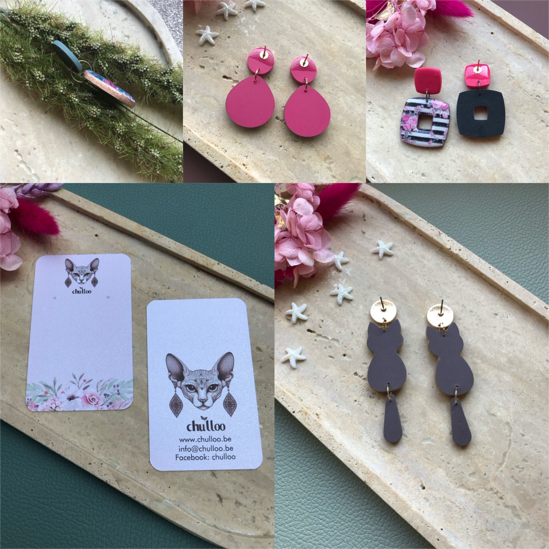Bij chulloo gaan we voor niets minder dan perfectie. Al onze oorbellen worden tot in de puntjes afgewerkt. Oorbellen met print krijgen geen saaie witte achterkant, maar een kleur die past bij de afbeelding die we gebruiken en een zijdezachte afwerking. Als finishing touch krijgen ze 2 laagjes resin, voor een super glossy afwerking en worden de randjes afgewerkt met een laagje goud of metallic verf!