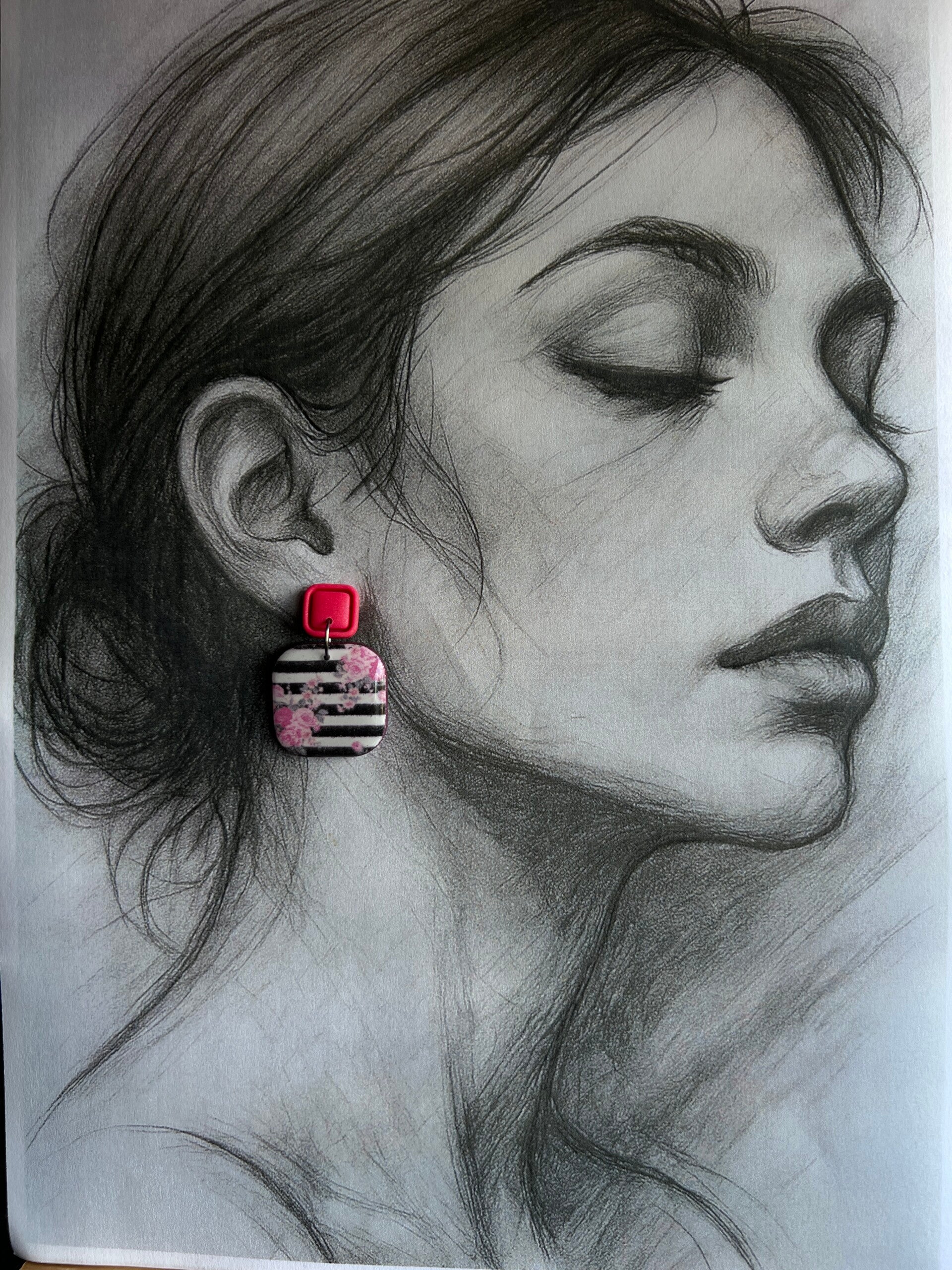 Stijl MILA. Print afgewerkt met resin. Hypoallergene materialen. MILA is 4,5 cm lang