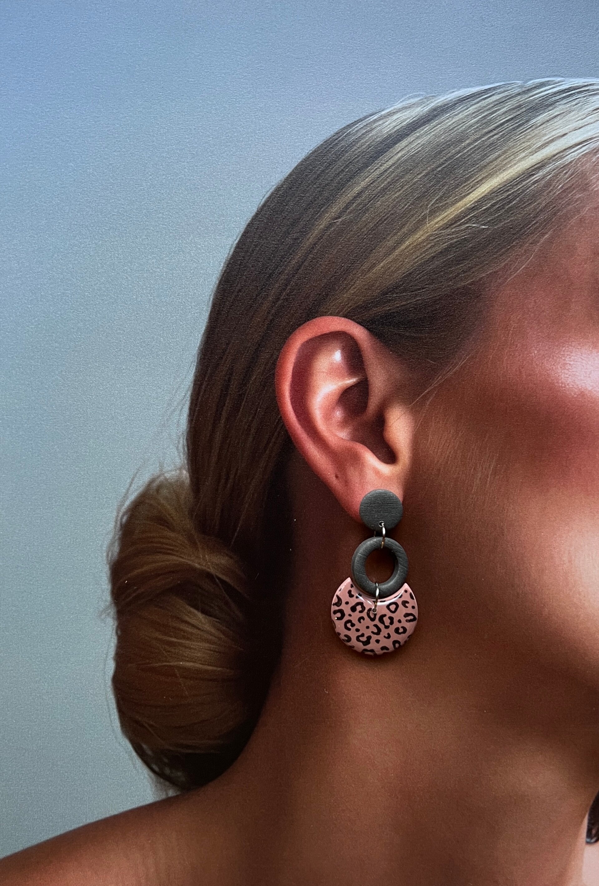 Deze opvallende oorbellen in taupe kleur met zwarte accenten en luipaardprint zijn een must-have voor wie houdt van gedurfde, stijlvolle accessoires. De oorbellen zijn handgemaakt uit polymeerklei, afgewerkt met een glanzende resinlaag voor extra diepte en luxe uitstraling. Lichtgewicht en comfortabel om te dragen, perfect voor elke dag of een speciale gelegenheid. Laat je persoonlijkheid stralen met deze unieke statement pieces!