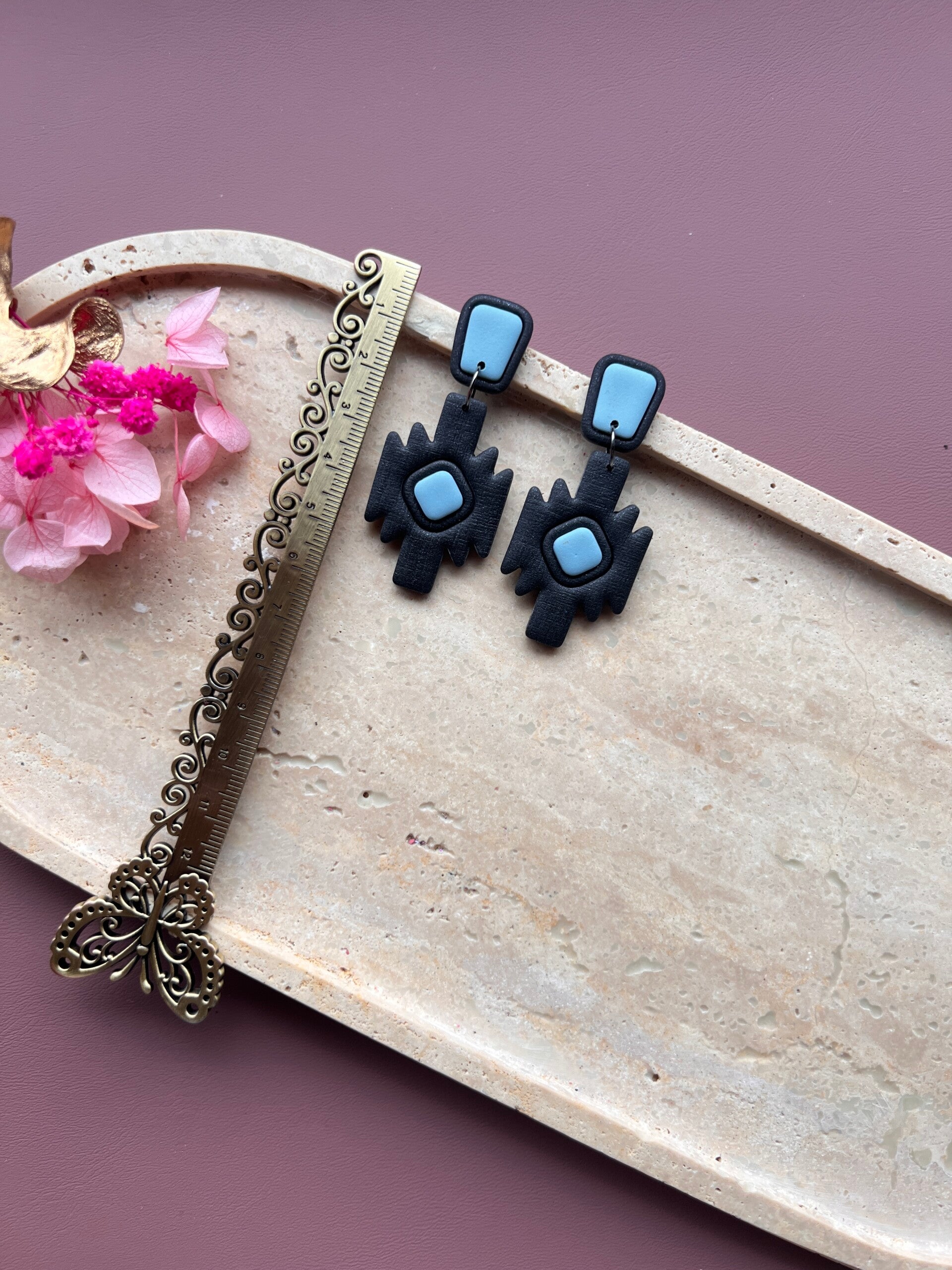 NAJA is onze nieuwe aanwinst in de bohemian collectie. Met haar zwarte katoenrelief en gekleurde inleg steelt ze van ver de aandacht. NAJA is 6cm lang en heeft oorstekers van 18k gold plated 316L chirurgisch roestvrij staal.