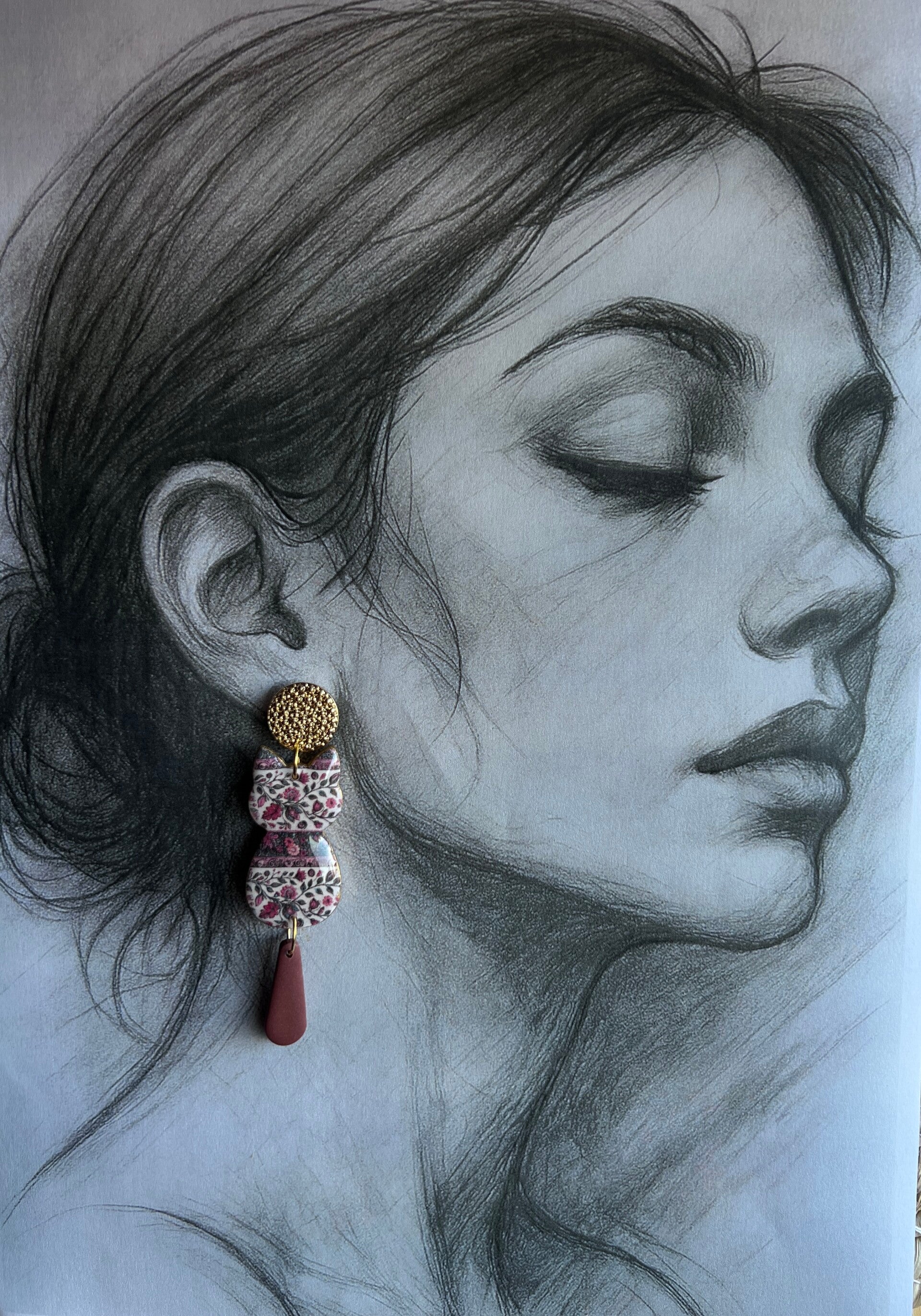 Katten oorbellen rustic petals