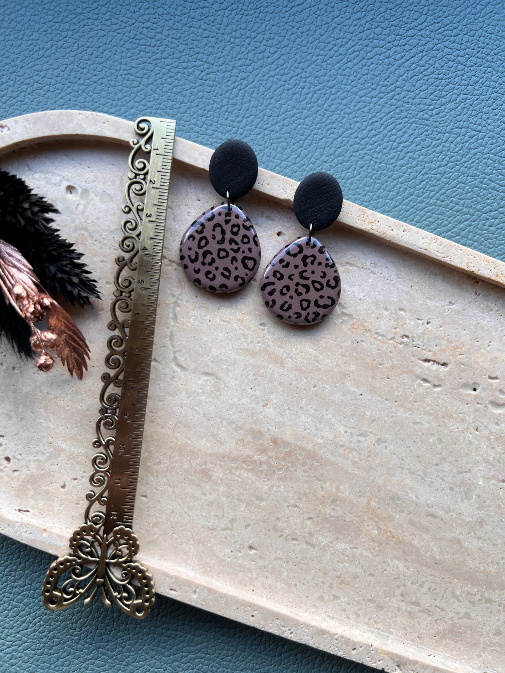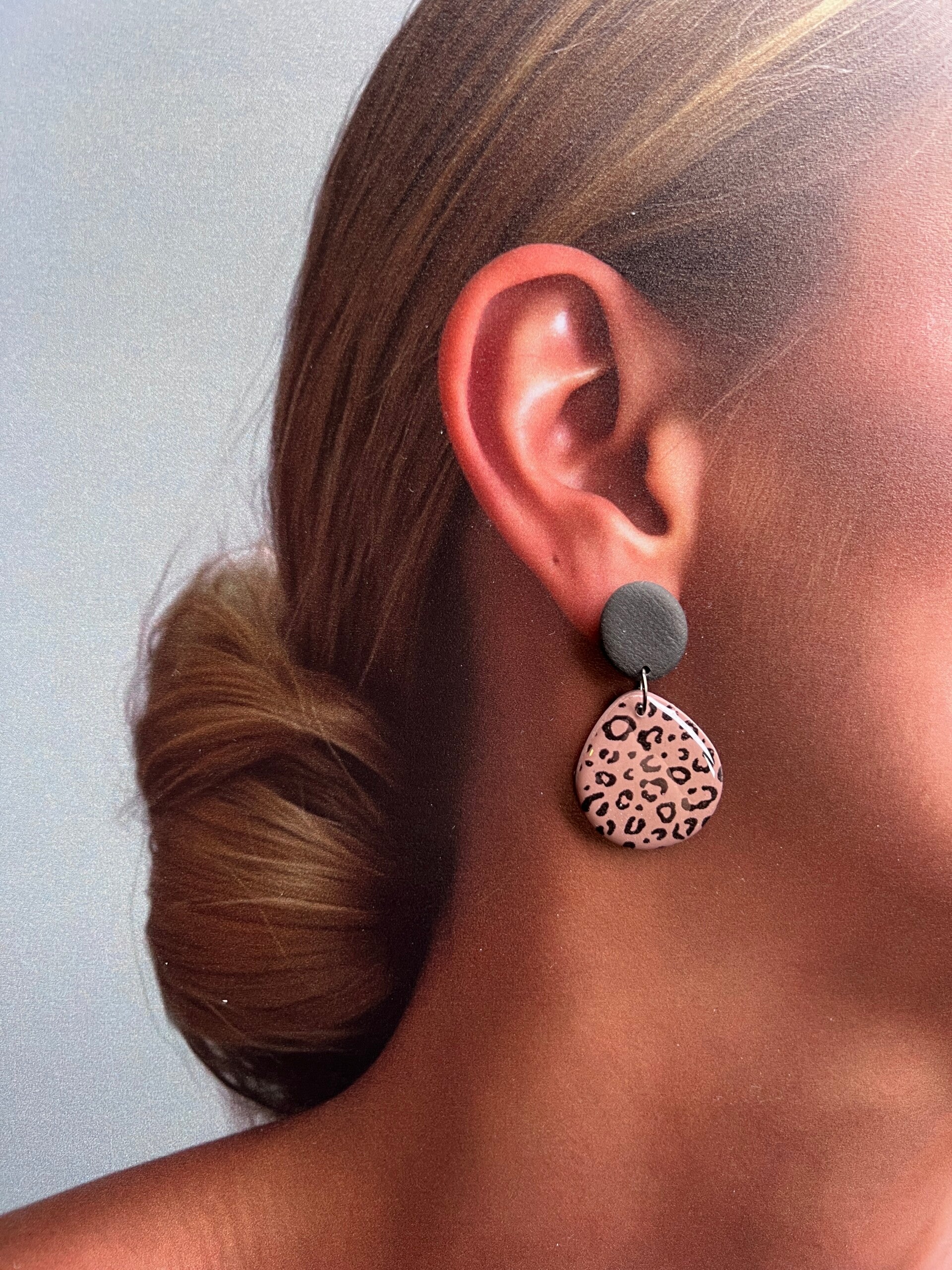 Deze opvallende oorbellen in taupe kleur met zwarte accenten en luipaardprint zijn een must-have voor wie houdt van gedurfde, stijlvolle accessoires. De oorbellen zijn handgemaakt uit polymeerklei, afgewerkt met een glanzende resinlaag voor extra diepte en luxe uitstraling. Lichtgewicht en comfortabel om te dragen, perfect voor elke dag of een speciale gelegenheid. Laat je persoonlijkheid stralen met deze unieke statement pieces!
