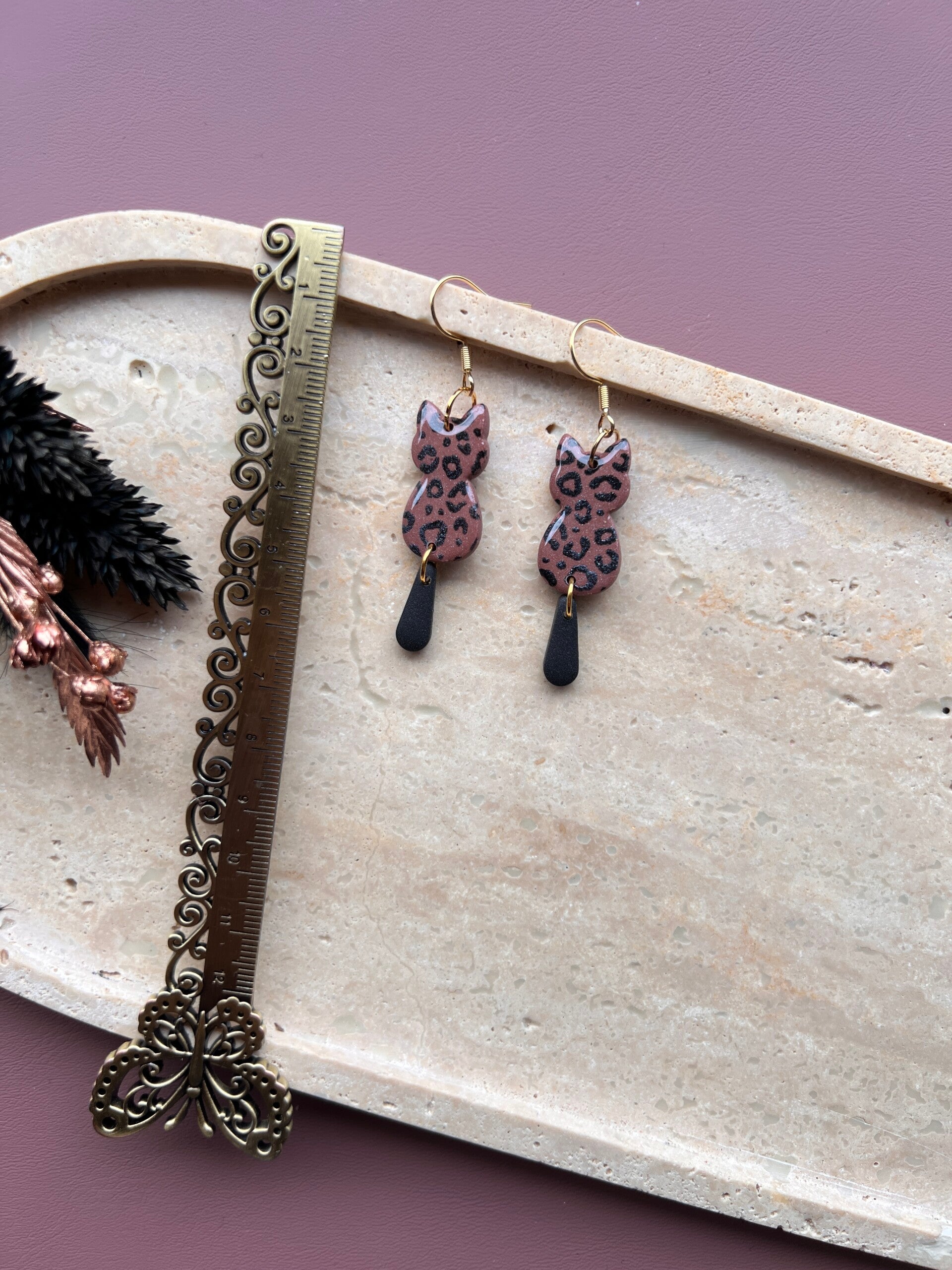 CHULLOO XS met luipaardprintje. 6 cm lang. Oorhaakjes van 18k gold plated 316L chirurgisch rvs