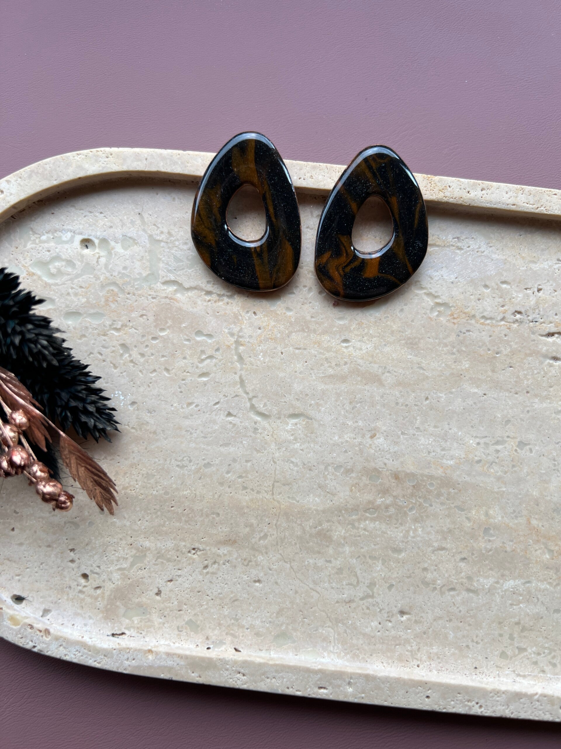 De AURI Espresso Love maxi studs combineren warme espressotinten met een subtiele marmering die doet denken aan vloeibare koffie en gesmolten chocolade.