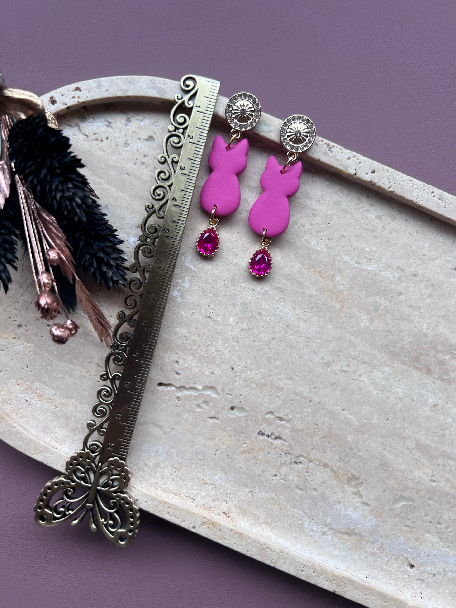 CRYSTAL TAIL fuchsia – katten oorbellen met kristalbedel