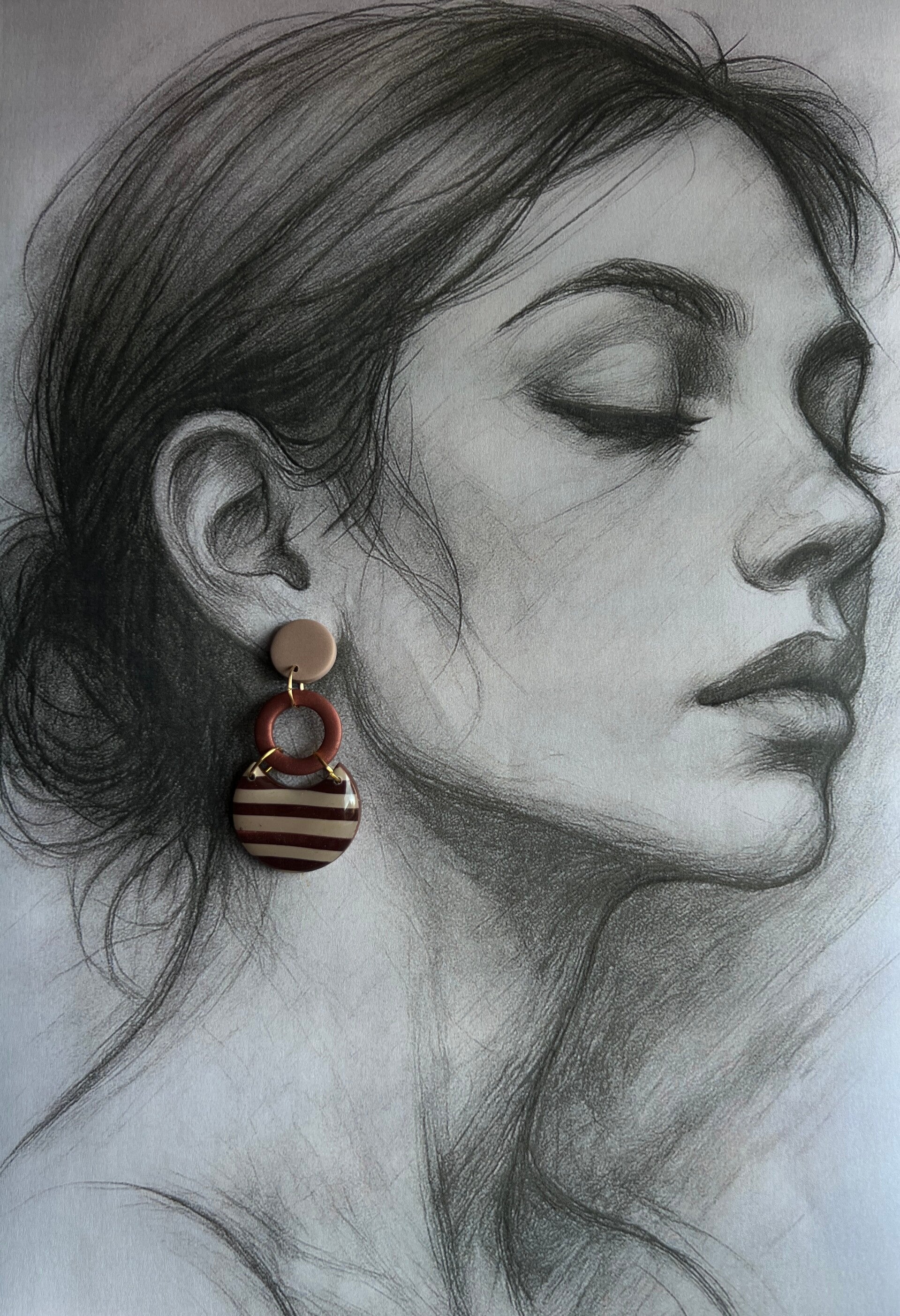AMARA mokka muze ~ oorbellen met gestreept patroon