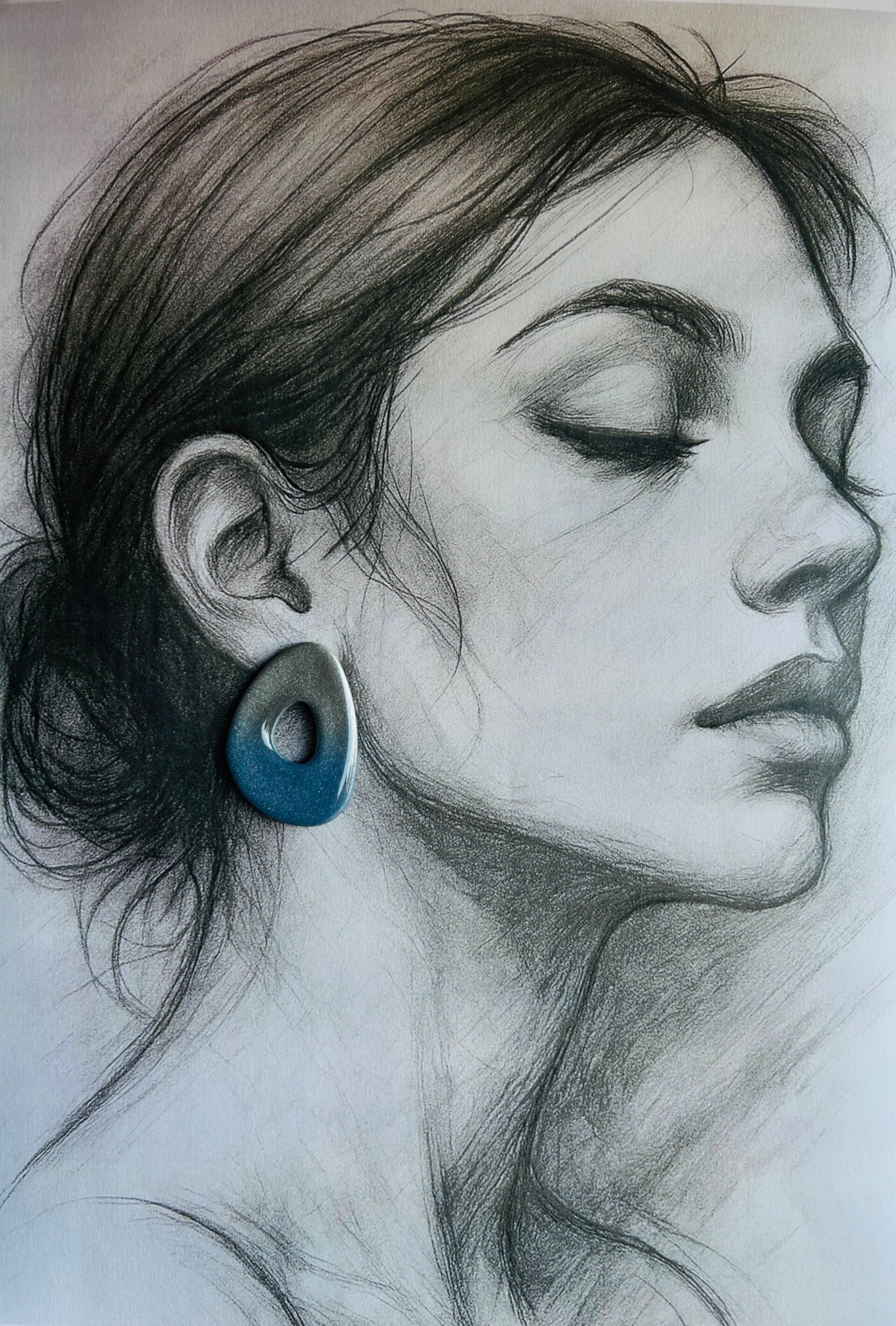 Hun vloeiende vorm en metallic glans vangen het licht als bevroren dauw op glas. Minimalistisch en opvallend tegelijk — een moderne klassieker die elke look een ijzig elegante toets geeft.