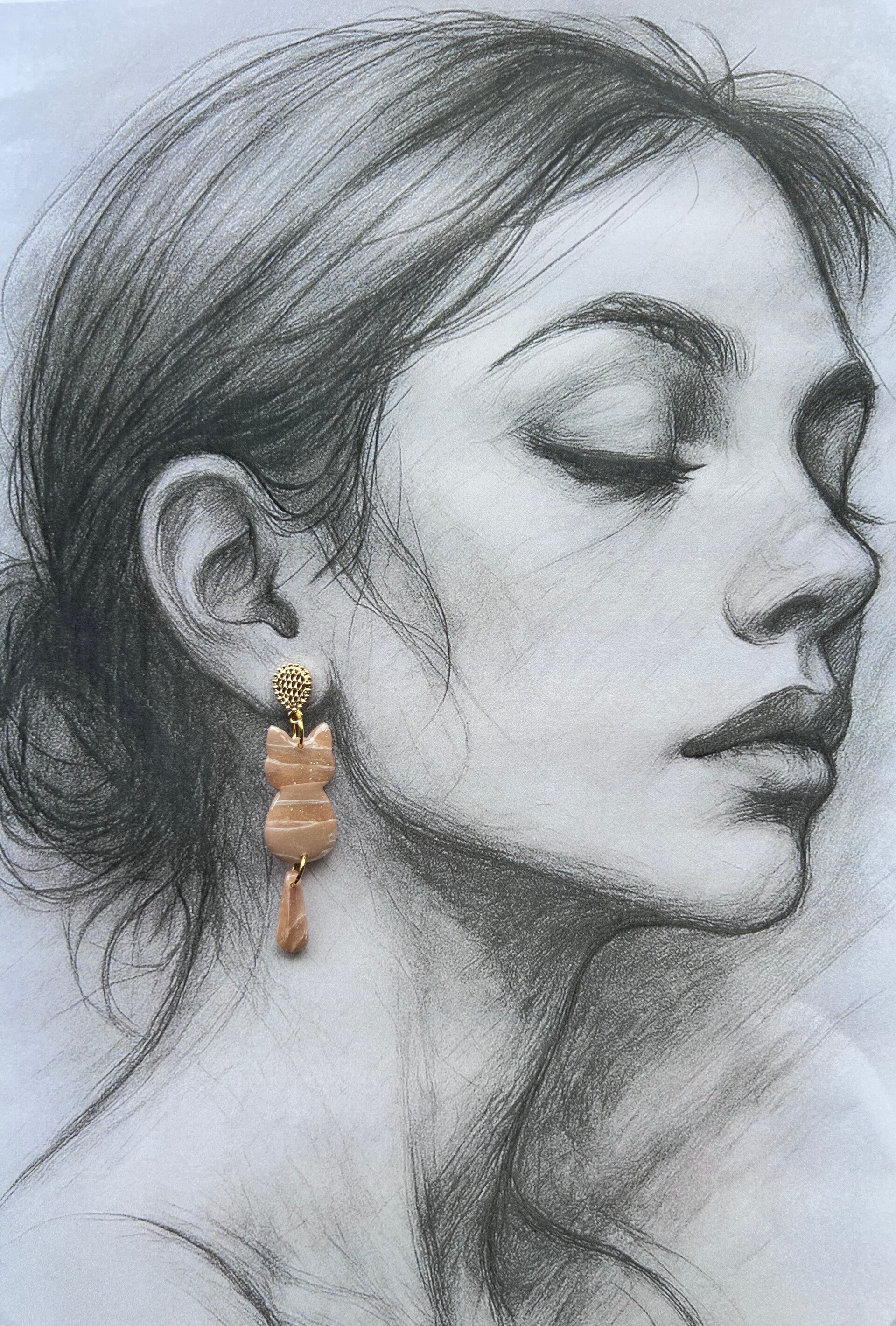 Katten oorbellen blush stone stripes small
