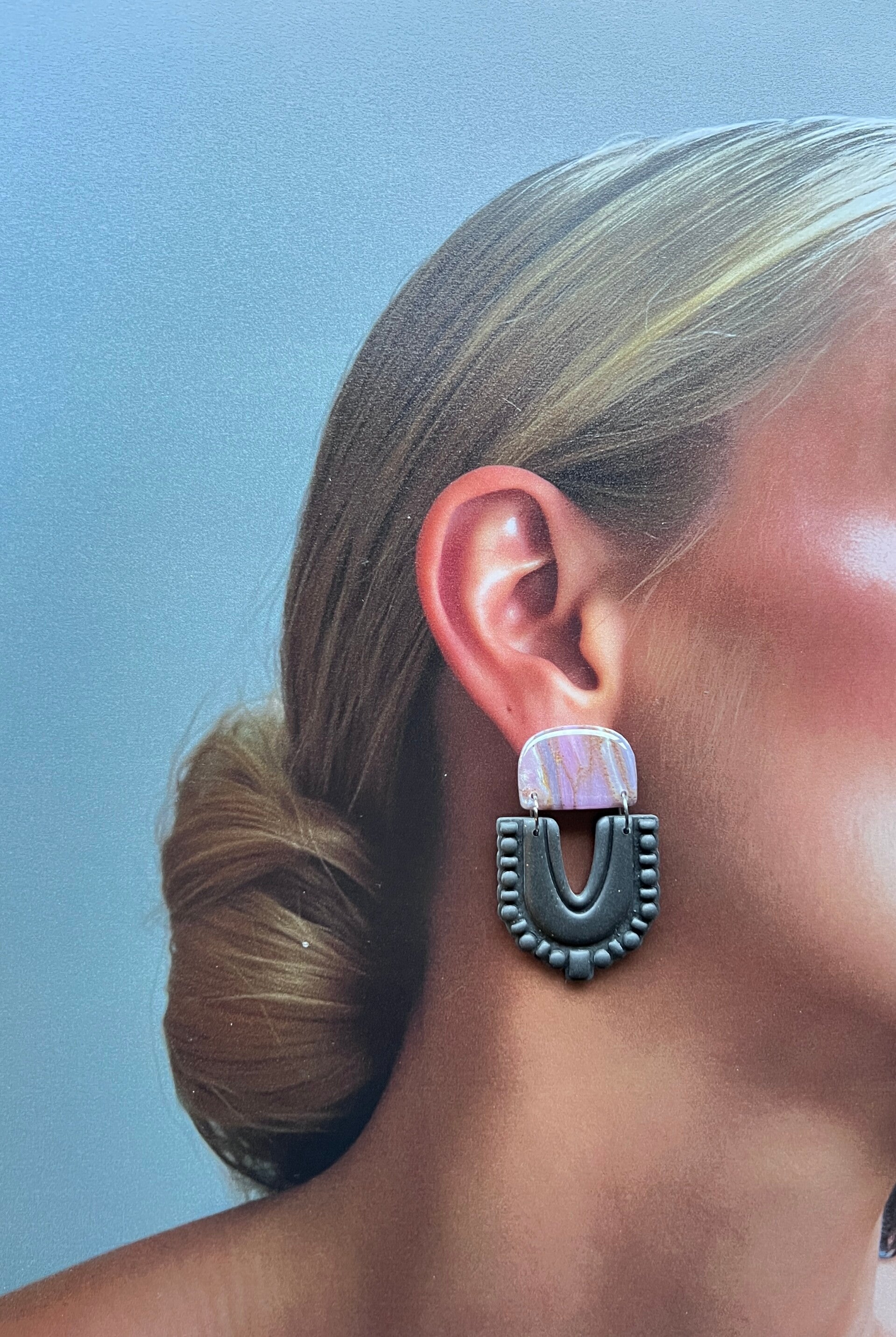 De paarse en grijs-gouden marmerlijnen geven deze oorbellen een zachte, bijna magische gloed — alsof er net wat sterrenstof in het oppervlak is blijven hangen. Een statement dat rustig blijft, maar toch die duidelijke “ik ben hier” energie met zich meedraagt. Modern, verfijnd en elegant op een gedurfde manier.