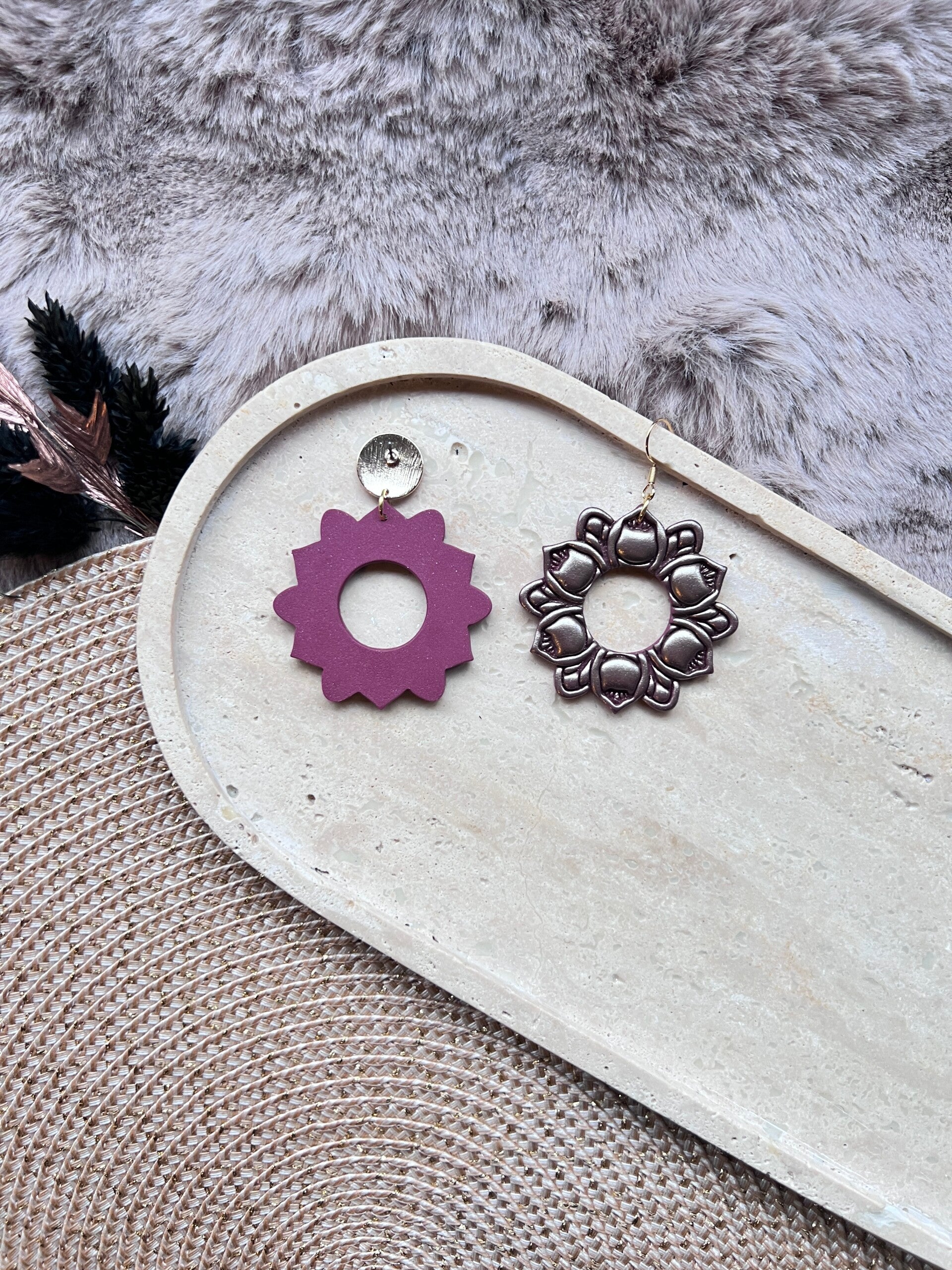 Mandala katten oorbellen merlot