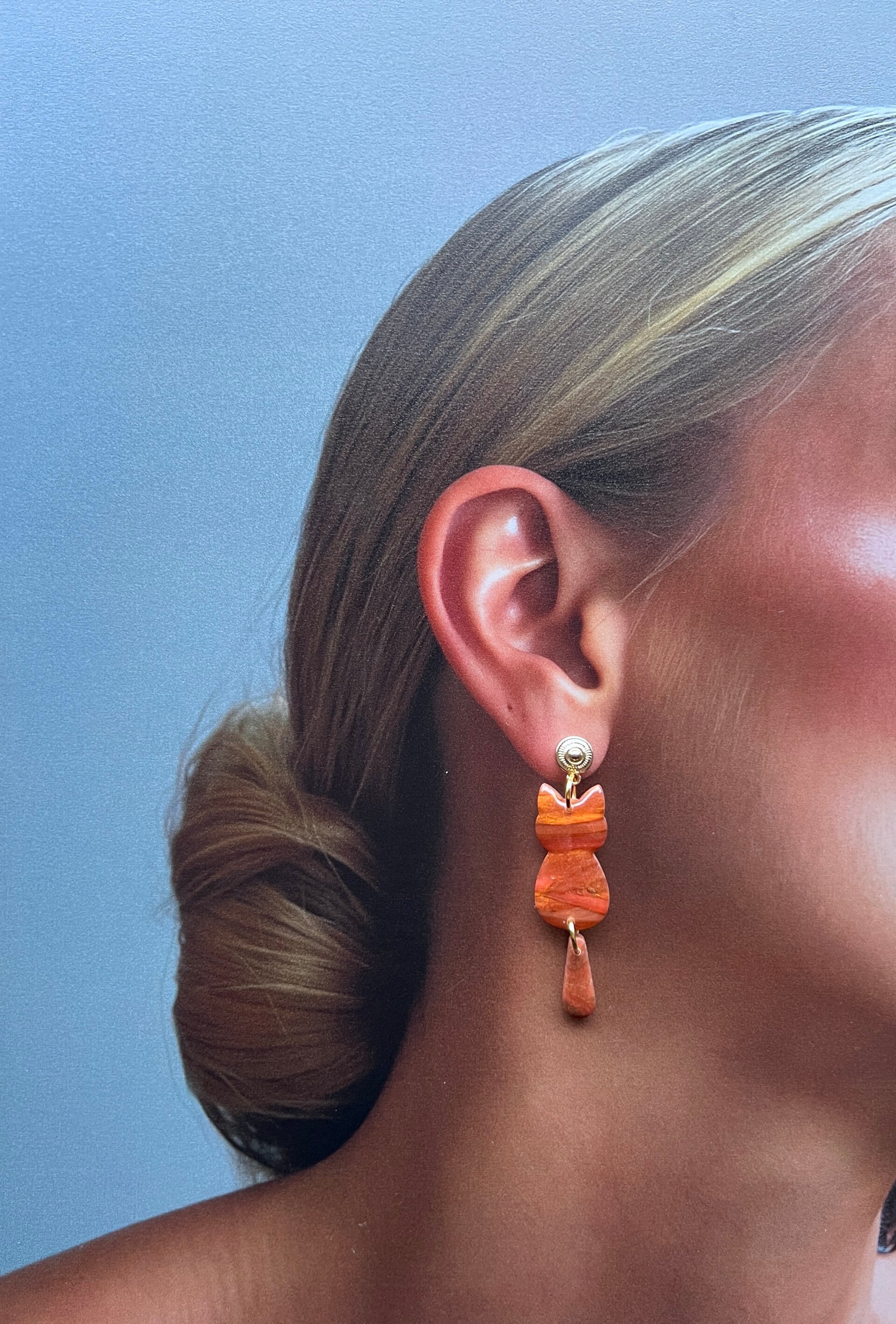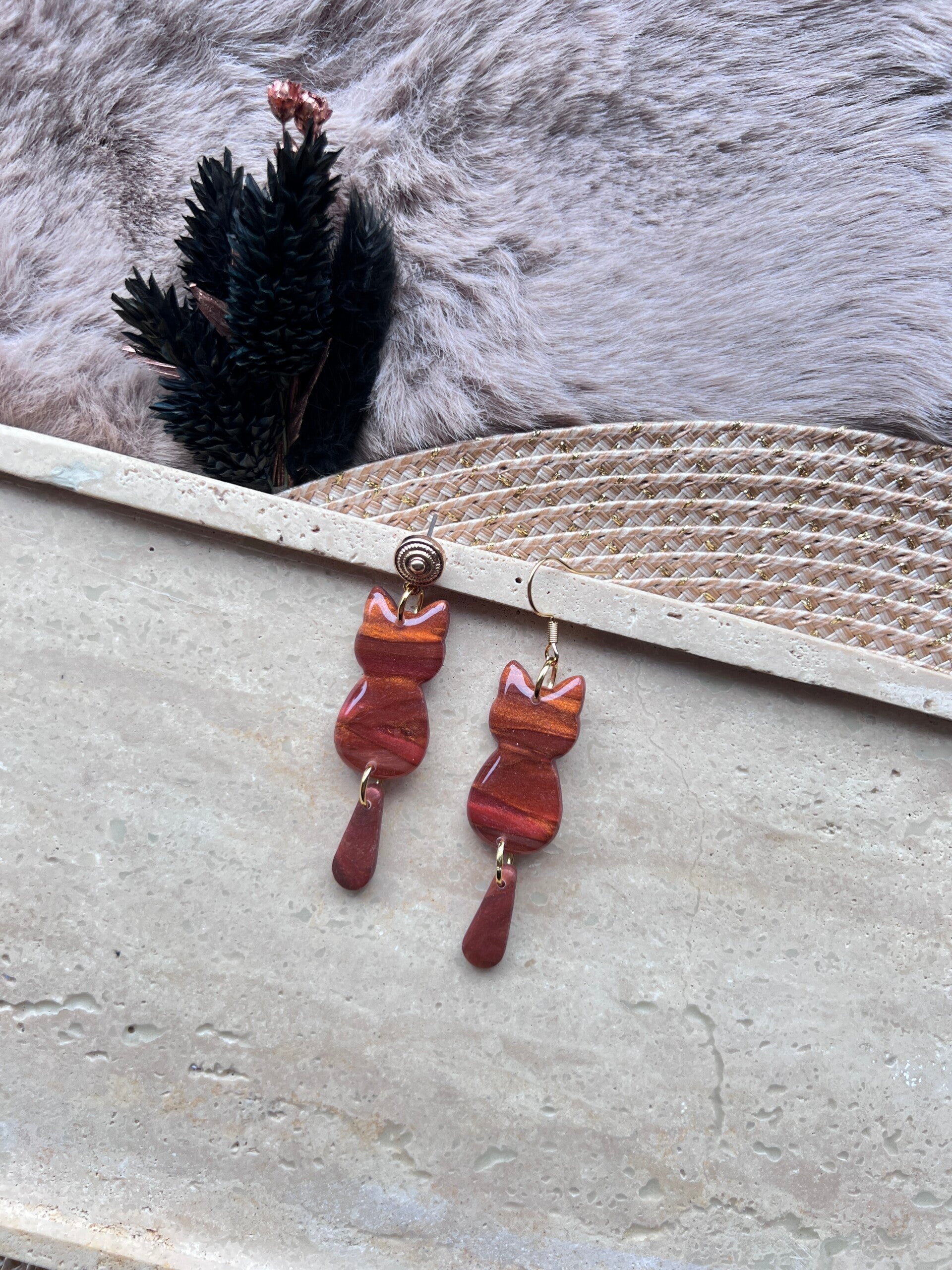 Katten oorbellen orange marble