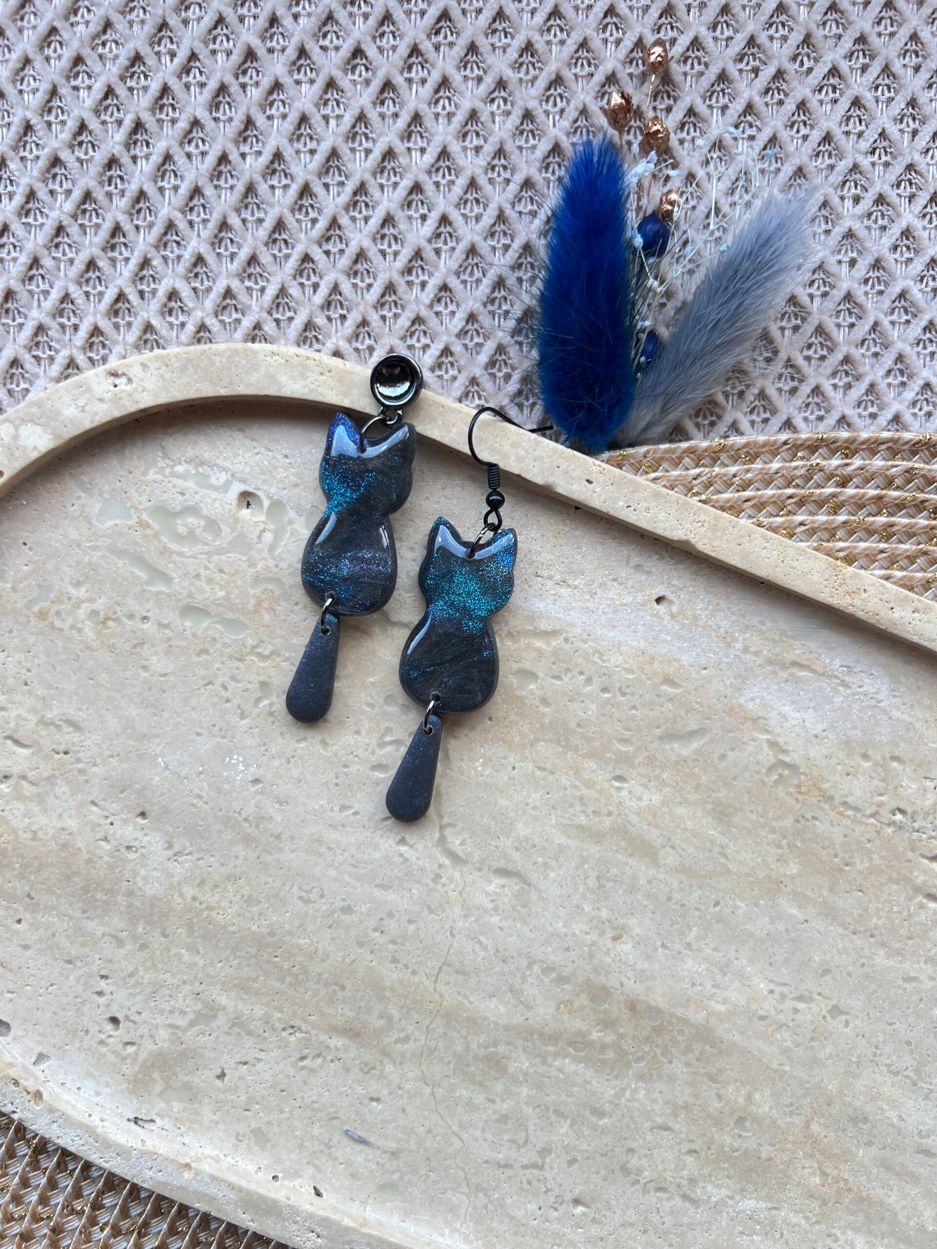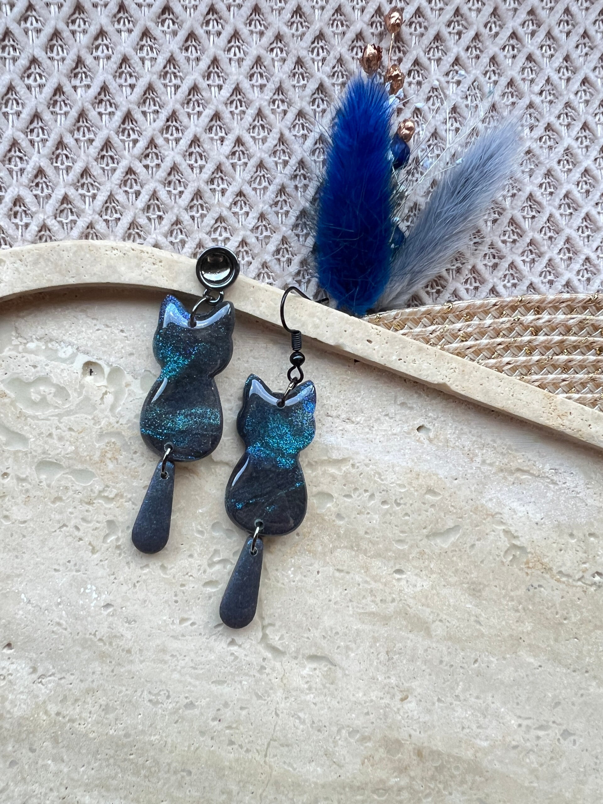 De Blue Fairydust kattenoorbellen combineren een diepe blauwtint met fijne, glinsterende accenten die doen denken aan sterrenstof. De glanzende afwerking versterkt het spel van licht en kleur, terwijl het slanke silhouet en het speelse staartdetail zorgen voor een verfijnde, magische uitstraling binnen de Chulloo-collectie.