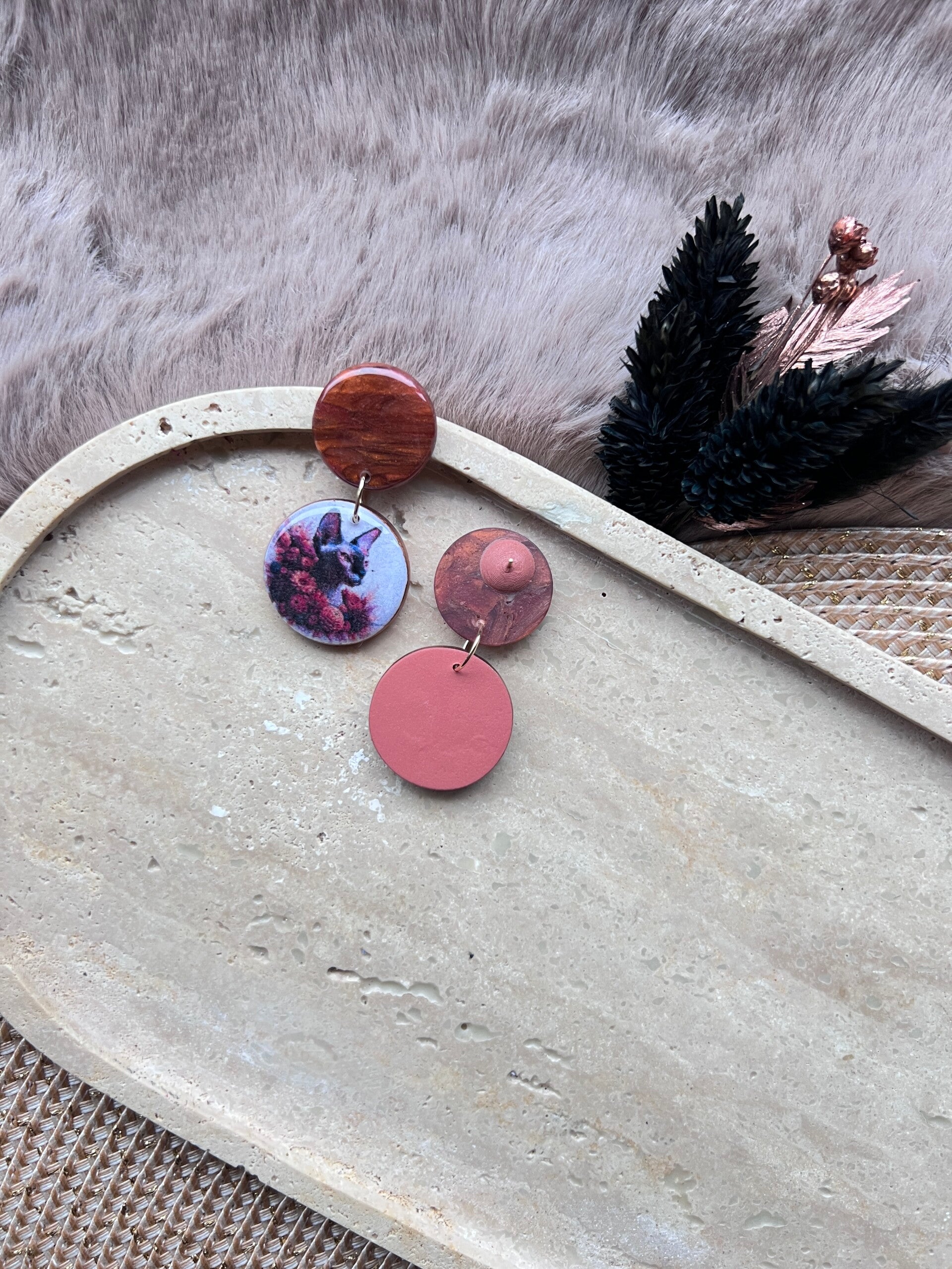 Deze sphynx kattenoorbellen zijn ontworpen als een ode aan de unieke uitstraling van de sphynx. De combinatie van strakke vormen, zachte marmerpatronen en een verfijnde illustratie benadrukt het karakter en het herkenbare silhouet van dit bijzondere ras. Een zorgvuldig vormgegeven statement, waarin eenvoud, vorm en detail centraal staan.