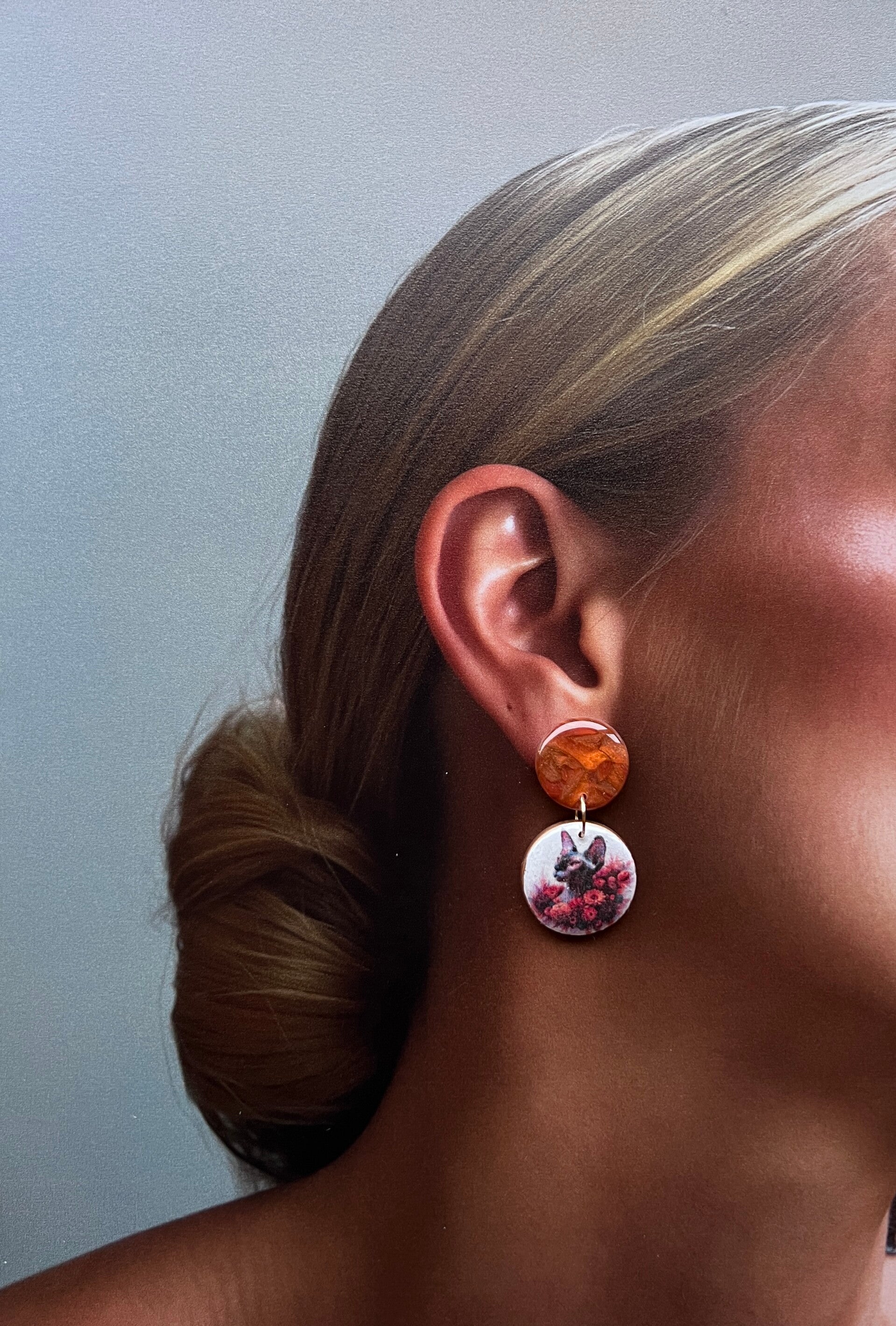 Sphynx katten oorbellen orange |