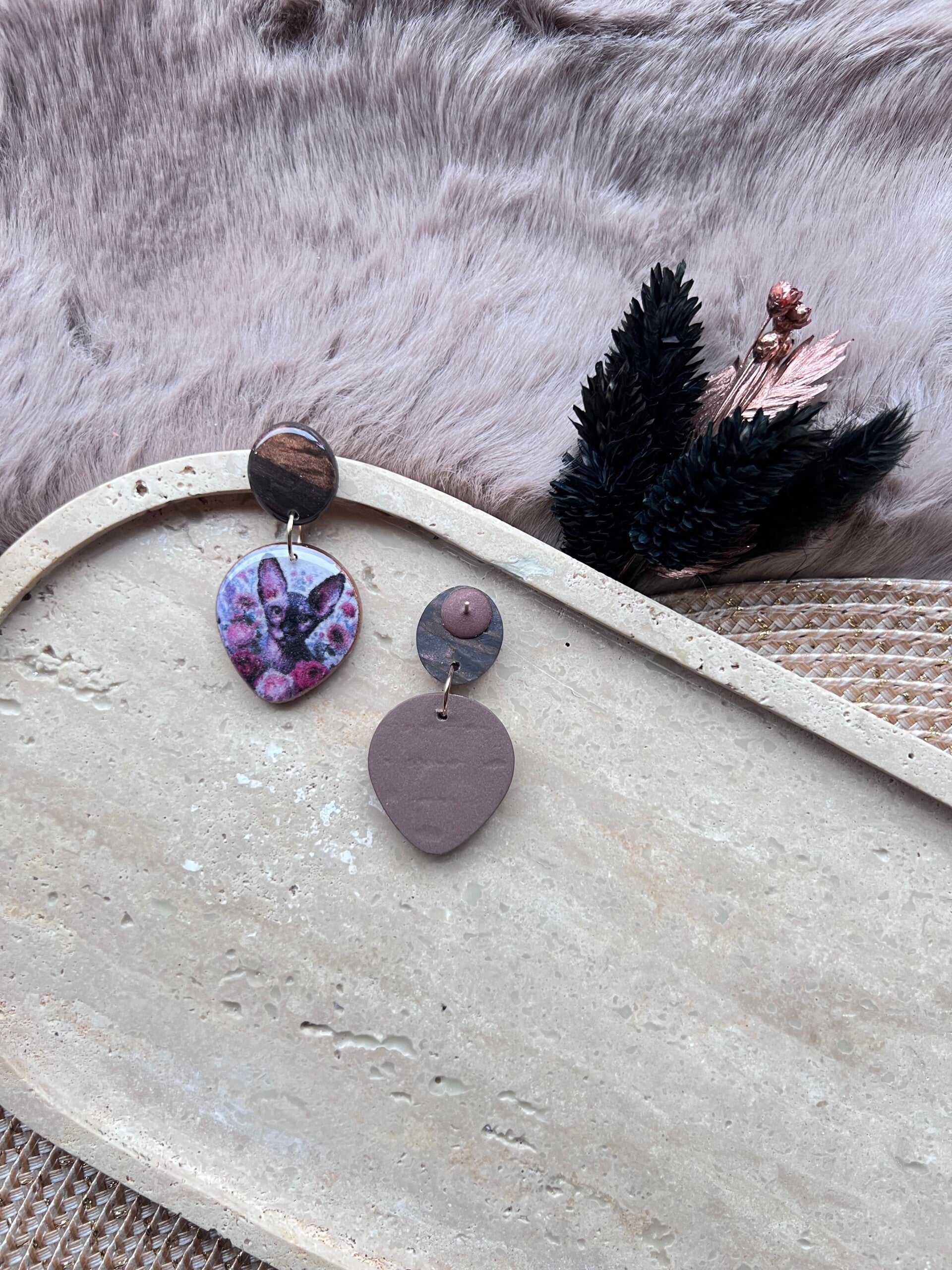 Deze sphynx kattenoorbellen zijn ontworpen als een ode aan de unieke uitstraling van de sphynx. De combinatie van strakke vormen, zachte marmerpatronen en een verfijnde illustratie benadrukt het karakter en het herkenbare silhouet van dit bijzondere ras. Een zorgvuldig vormgegeven statement, waarin eenvoud, vorm en detail centraal staan.