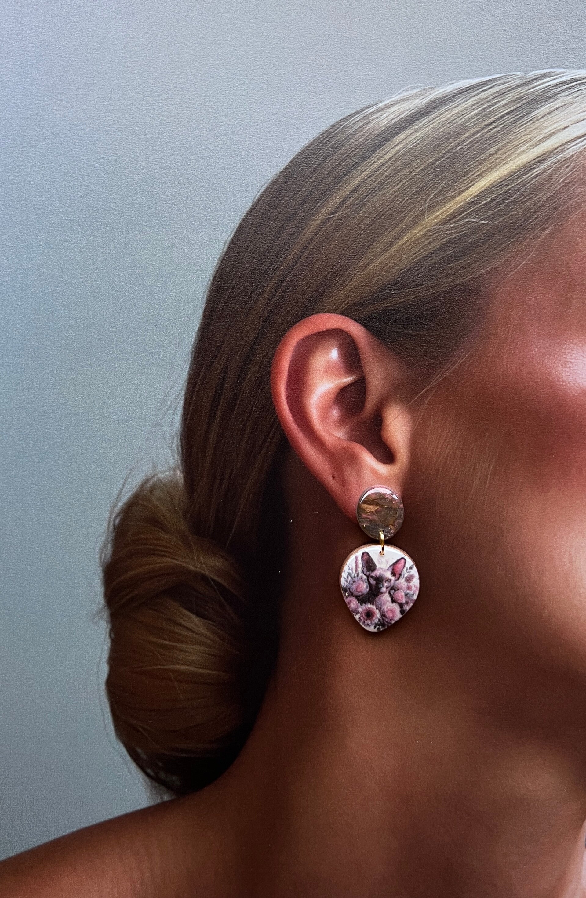 Deze sphynx kattenoorbellen zijn ontworpen als een ode aan de unieke uitstraling van de sphynx. De combinatie van strakke vormen, zachte marmerpatronen en een verfijnde illustratie benadrukt het karakter en het herkenbare silhouet van dit bijzondere ras. Een zorgvuldig vormgegeven statement, waarin eenvoud, vorm en detail centraal staan.