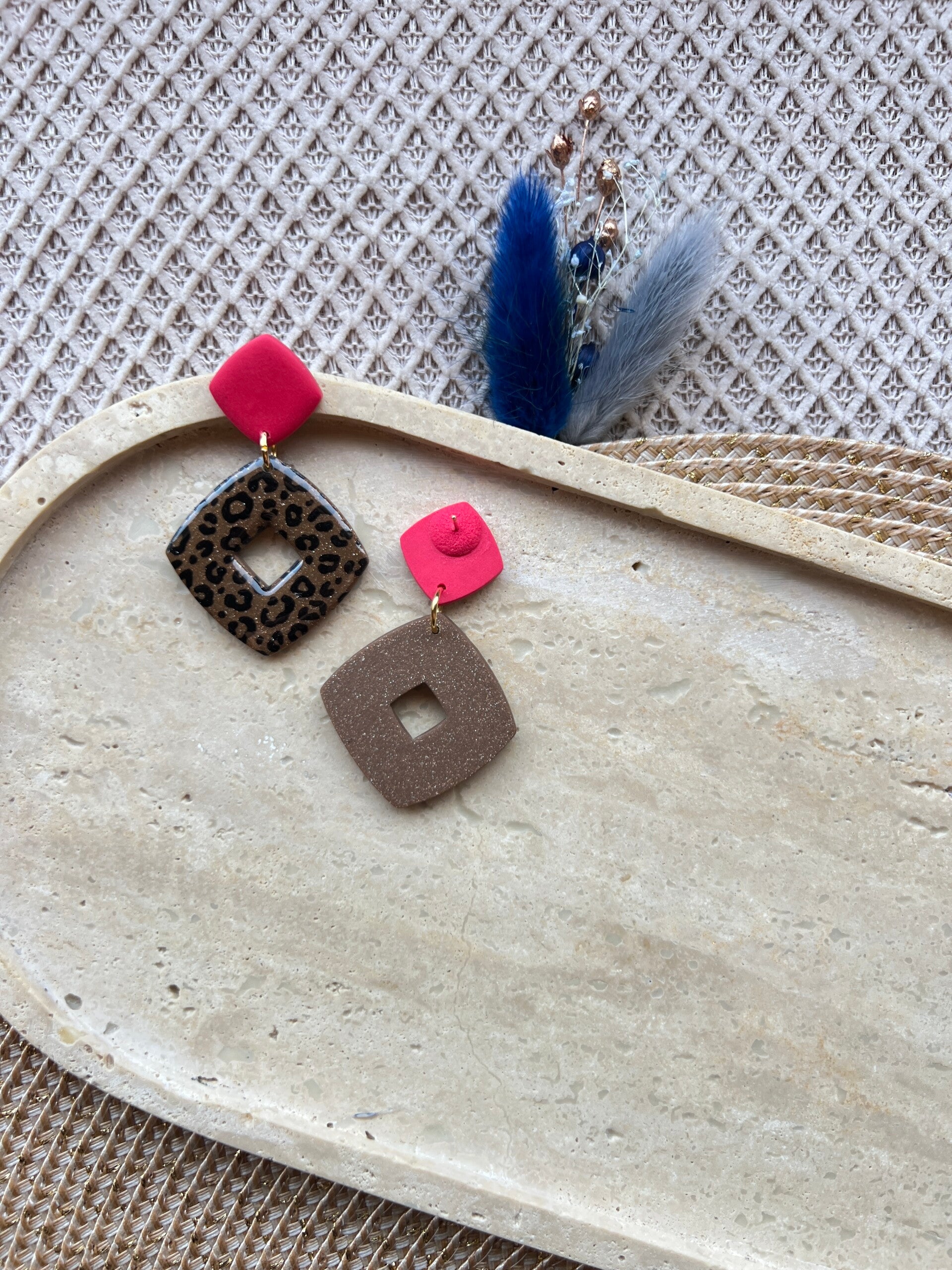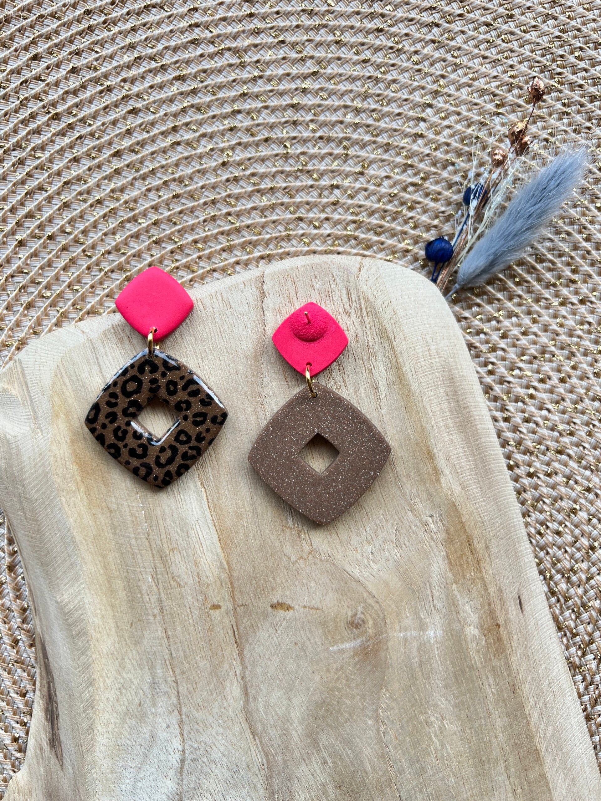 • De oorbellen worden gemaakt uit polymeerklei en afgewerkt met een beschermende resinlaag