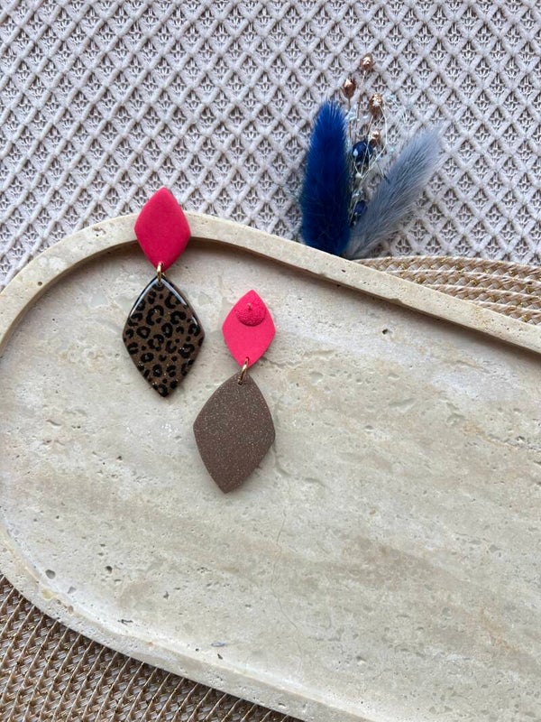 • De oorbellen worden gemaakt uit polymeerklei en afgewerkt met een beschermende resinlaag