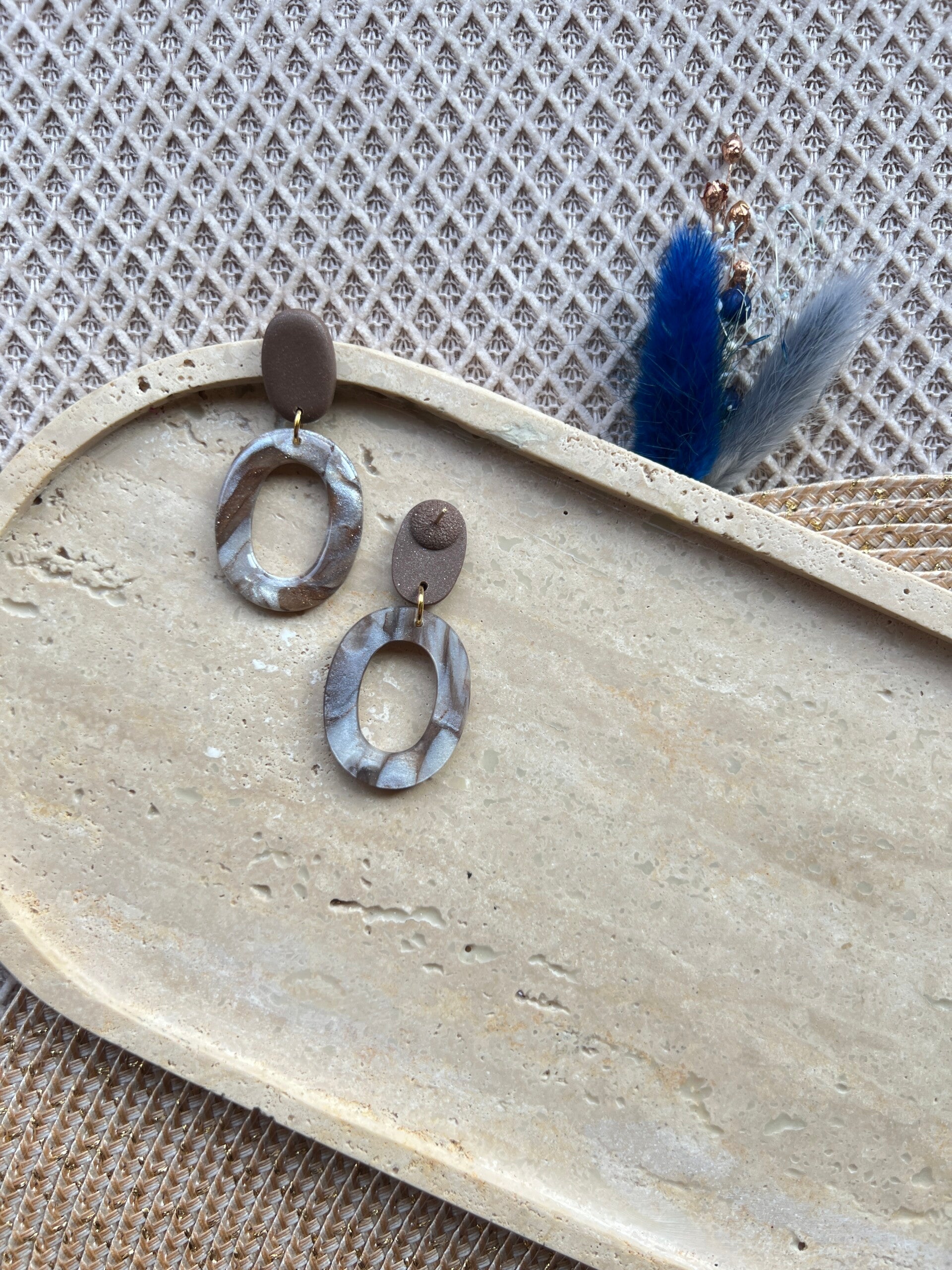• Oorsteker: 18k gold plated 316L chirurgisch roestvrij staal, ingebakken in de klei voor een aangenaam en huidvriendelijk draagcomfort