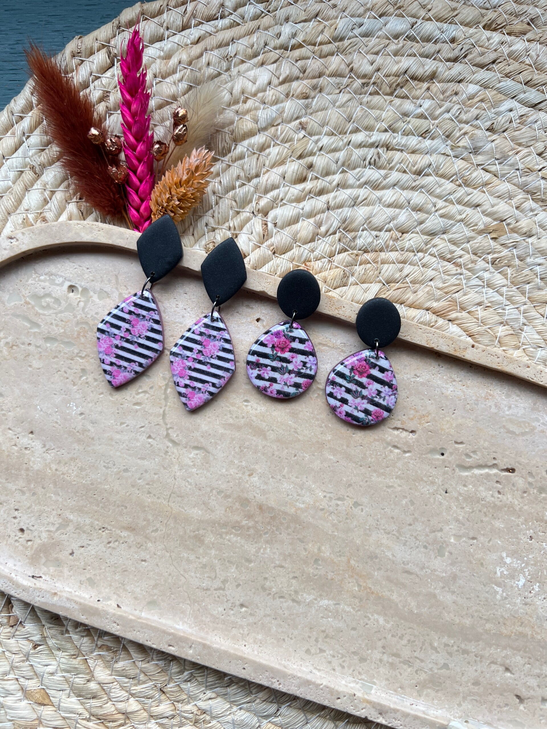 Deze prachtige statement oorbellen in gestreept bloemen motief zijn speels, rebels en tegelijk vrouwelijk.