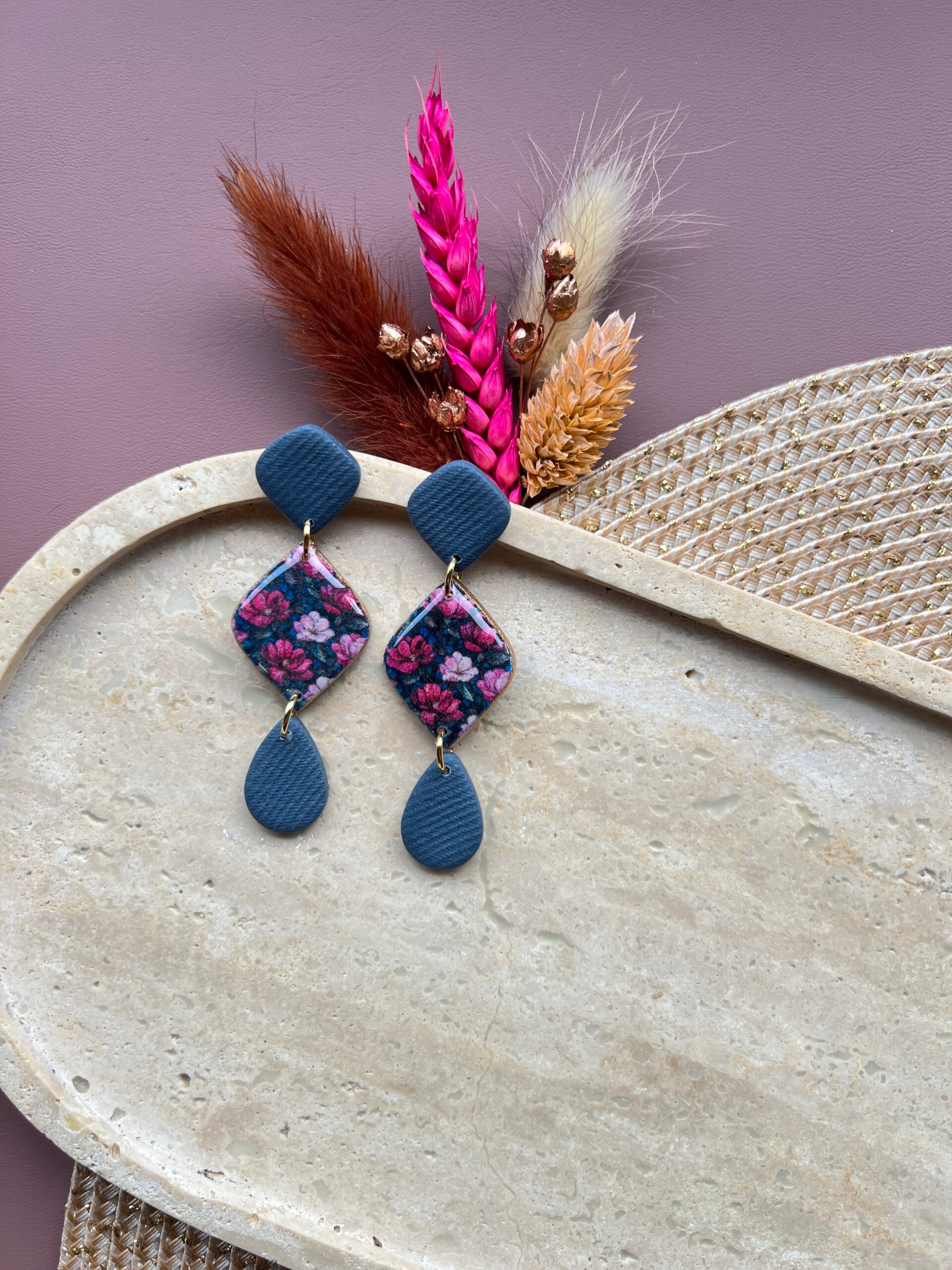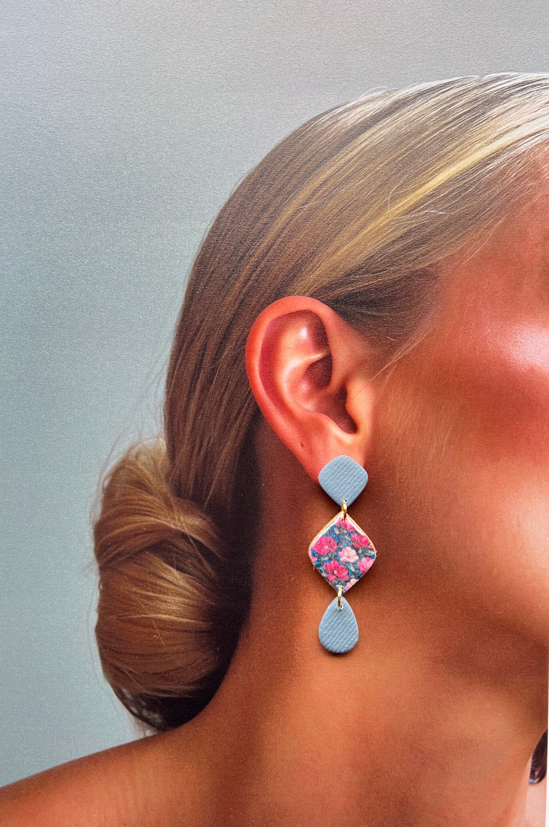 Het diepe denimblauw geeft deze oorbellen hun sterke uitstraling, terwijl de bloemenprint zorgt voor dat extra detail dat het geheel afmaakt. Het voelt anders dan anders, en net daardoor zo goed.