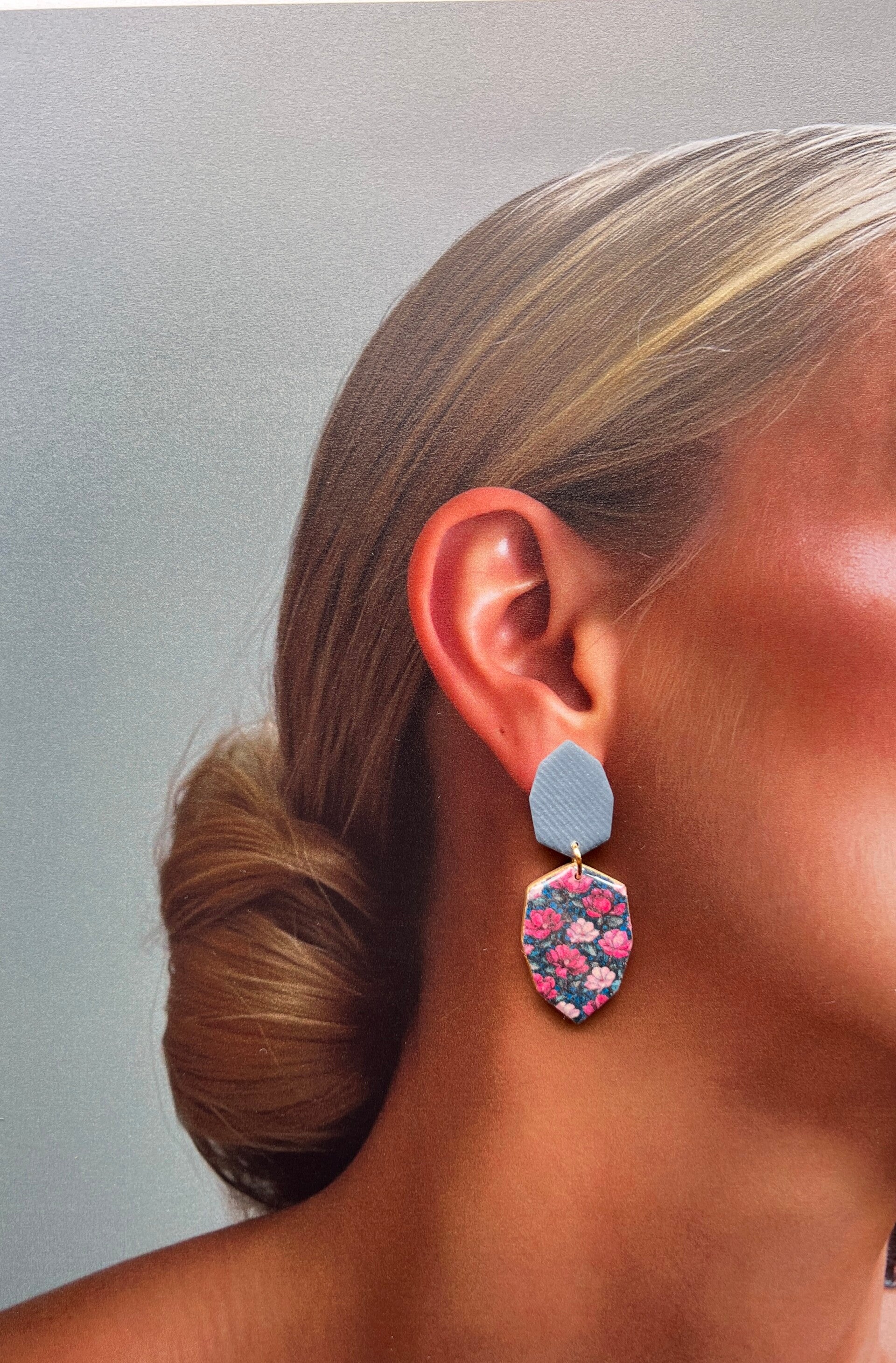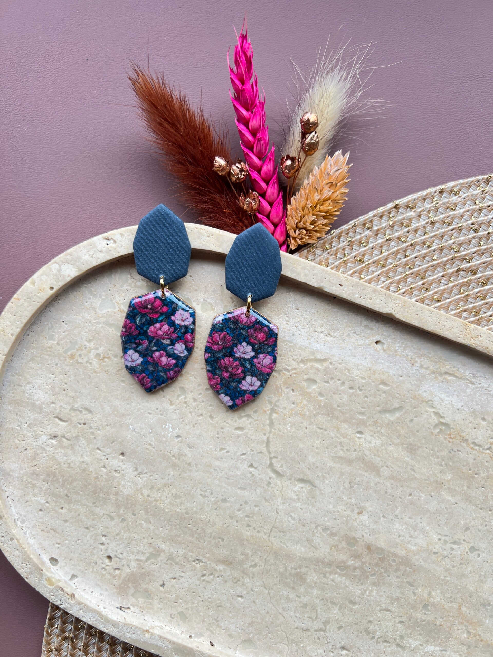 Het diepe denimblauw geeft deze oorbellen hun sterke uitstraling, terwijl de bloemenprint zorgt voor dat extra detail dat het geheel afmaakt. Het voelt anders dan anders, en net daardoor zo goed.